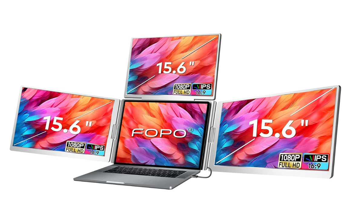 FOPO’s portable quad monitor setup adds three 15.6-inch 1080p IPS displays driven by a single cable with external power. It offers 360-degree rotation, solid color and contrast, and works with 13.6- to 17.3-inch laptops. Make sure you select the option to save 5% at checkout.View Deal